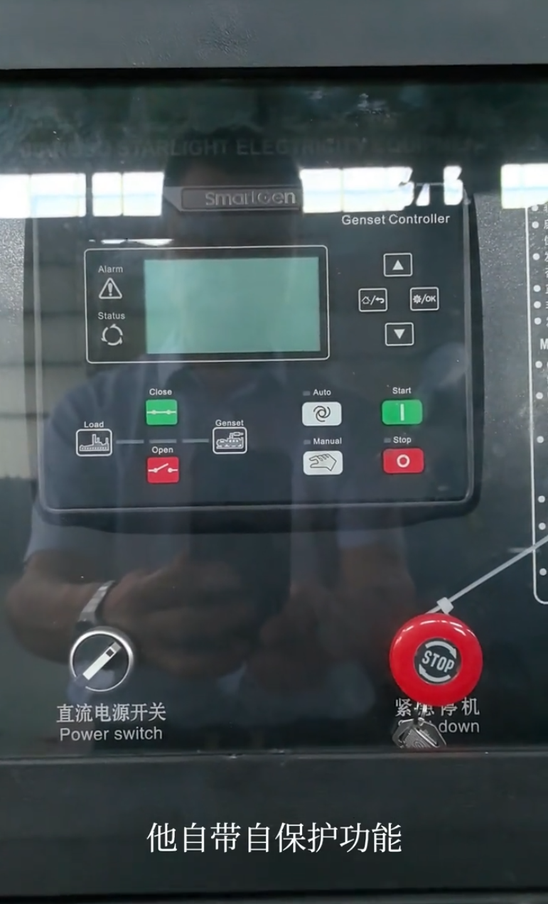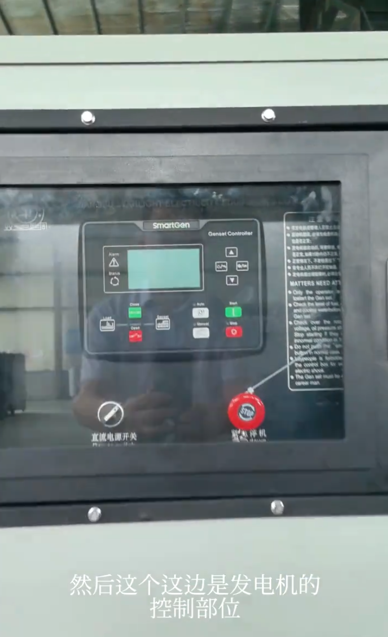 5、同时在箱体上开有观察窗和机组紧急停机故障按钮,以便观察机组的运行情况及在机组出现紧急情况时以最快的速度停机避免机组受到损坏。